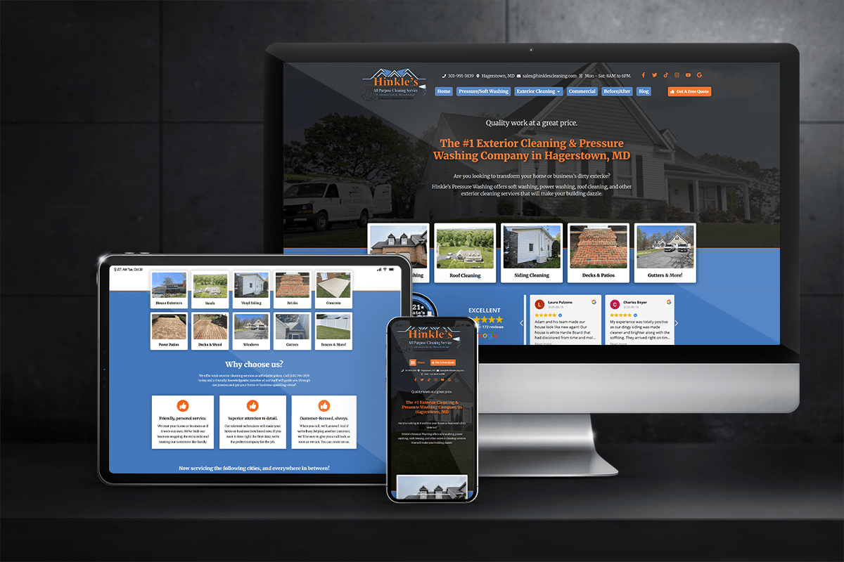 Lead It Solution teamed up with Hinkle’s Pressure Washing, a top-rated exterior cleaning company in Hagerstown, MD, to build a bold and informative website that showcases their full range of residential and commercial cleaning services. The goal was to reflect their trusted, owner-operated approach while emphasizing service quality, safety, and customer satisfaction. We designed a responsive site with strong service callouts, before-and-after visuals, and simplified quote request functionality—helping drive more leads from local homeowners and businesses.