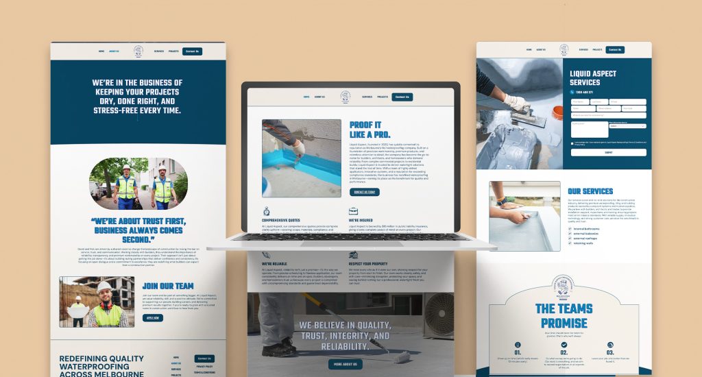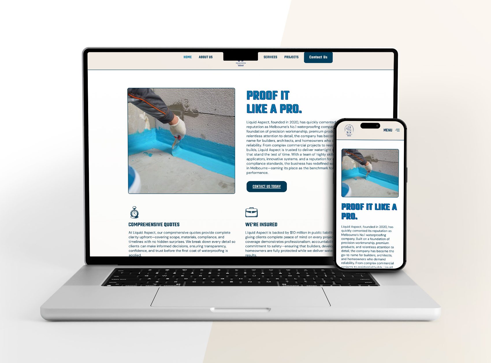 Liquid Aspect approached us to build a strong digital presence that reflects their leadership in Melbourne’s waterproofing industry—where precision, reliability, and integrity define every project. We designed a bold yet refined website that mirrors the company’s craftsmanship and professionalism, balancing technical expertise with approachability. The site emphasizes trust through clear service breakdowns, insurance assurances, and transparent quoting—all while maintaining a sleek, modern aesthetic. From seamless navigation to strong visual hierarchy, every detail was crafted to reinforce Liquid Aspect’s core values of quality, trust, and reliability. Optimized for performance and accessibility, the new website positions Liquid Aspect as the benchmark for waterproofing excellence in Melbourne—helping builders, architects, and homeowners connect with a company that truly delivers watertight confidence.
